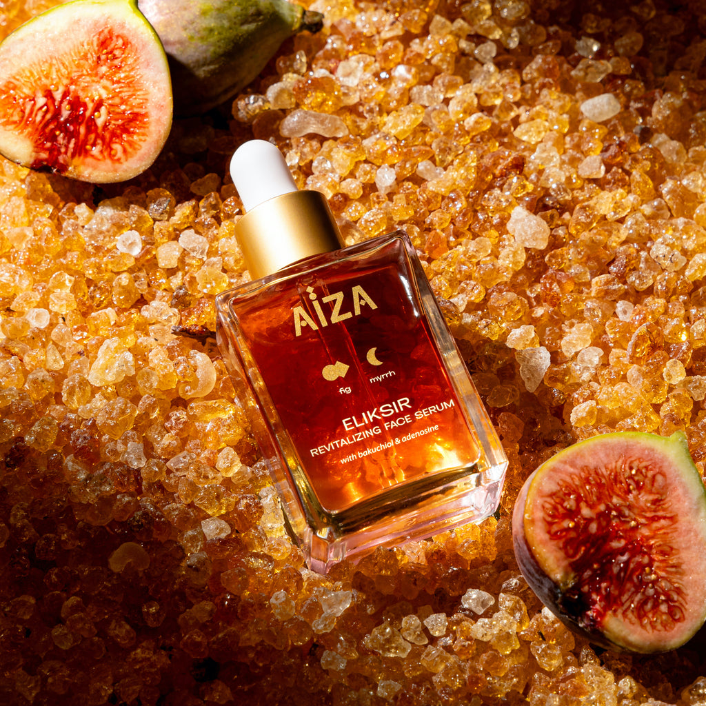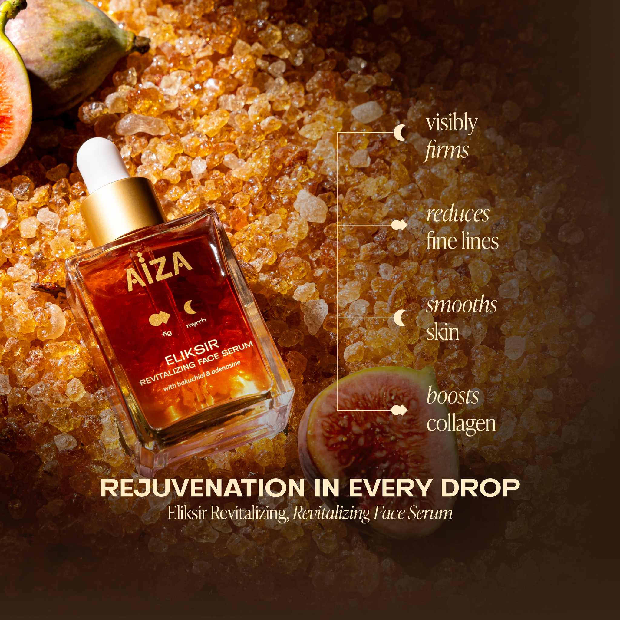 Water (Aqua), Cetyl Ethylhexanoate, Simmondsia Chinensis (Jojoba) Seed Oil, Hydrogenated Polydecene, 1,2-Hexanediol, Squalane, Persea Gratissima (Avocado) Oil, Niacinamide, Commiphora Myrrha Resin Extract, Ficus Carica (Fig) Fruit Extract, Carthamus Tinctorius (Safflower) Seed Oil, Adenosine, Bakuchiol, Cellulose Gum, Sodium Chloride, Eclipta Prostrata Extract, Butylene Glycol, Astragalus Membranaceus Root Extract, Spilanthes Acmella Flower/Leaf/Stem Extract, Ethylhexylglycerin, Melia Azadirachta Leaf Extract, Tocopherol, Citric Acid, Ascorbyl Tetraisopalmitate, Helianthus Annuus (Sunflower) Seed Oil, Ubiquinone, Moringa Oleifera Seed Oil, Melia Azadirachta Flower Extract, Sodium Citrate, Coccinia Indica Fruit Extract, Dipropylene Glycol, Solanum Melongena (Eggplant) Fruit Extract, Aloe Barbadensis Flower Extract, Ocimum Sanctum Leaf Extract, Curcuma Longa (Turmeric) Root Extract, Corallina Officinalis Extract, Sodium Phytate, Fragrance (Parfum).