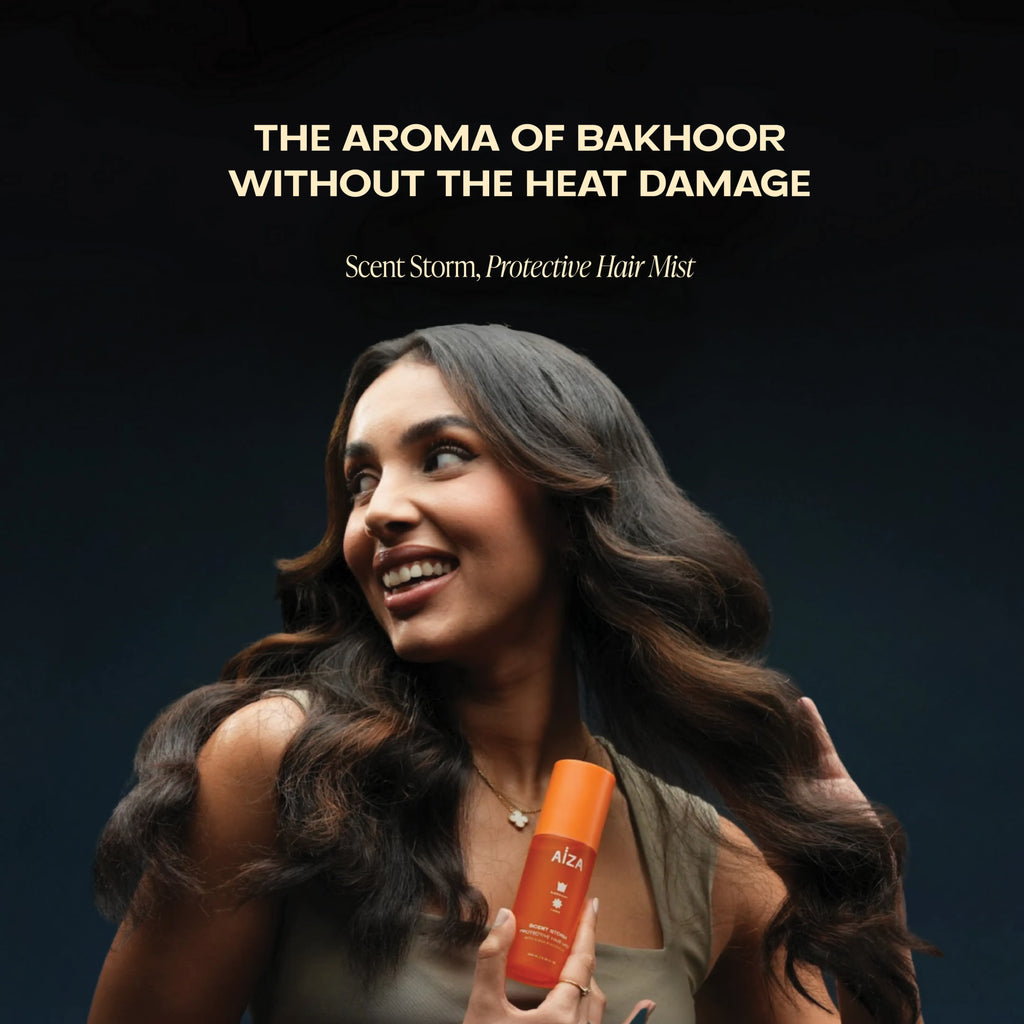 Step 1: Mist Scent Storm directly on damp or dry hair for shine, scent, and protection.