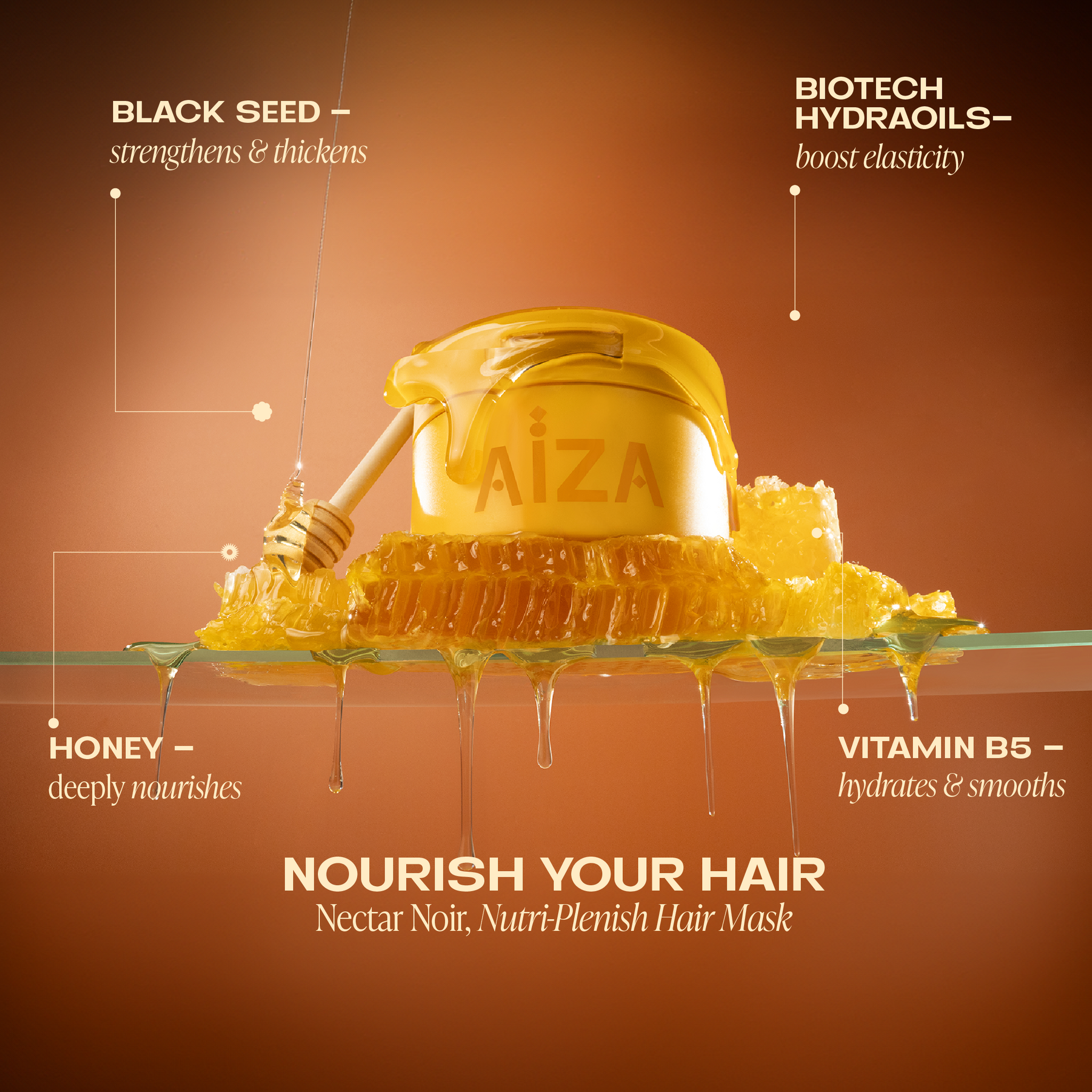 Water (Aqua), Cetearyl Alcohol, Myristyl Alcohol, Propylene Glycol, Cetrimonium Chloride, Caprylic/Capric Triglyceride, Almond/Borage/Linseed/Olive Acids/Glycerides, Panthenol, Nigella Sativa Seed (Black Seed) Oil, Honey Extract, Polyquaternium-10, Glycerin, Tocopheryl Acetate, Citric Acid, Caprylyl Glycol, Benzoic Acid, Tetrasodium Glutamate Diacetate, Tocopherol, PEG-12 Dimethicone, Ascorbyl Palmitate, Sodium Hydroxide, Phenoxyethanol, Titanium Dioxide (CI 77891), Iron Oxides (CI 77491), Mica, Fragrance (Parfum).